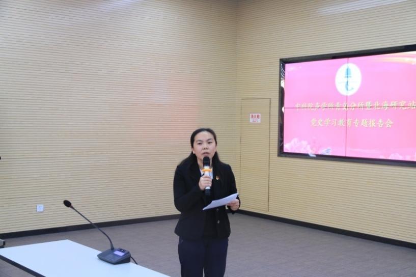 2021年5月8日,北海研究站组织召开党史学习教育专题报告会,青岛市委党校党史党建部副主任王政堂教授应邀作了专题辅导报告,站领导、在职党员及部分职工参加培训。站党委书记安俊英主持报告会。