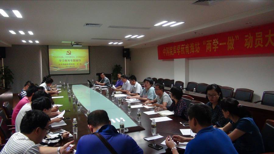 2016年4月28日,按照声学所党委和海南省直机关工委的部署,南海站党委组织召开“两学一做”动员大会,全体党员和入党积极分子参加会议,会议由南海研究站党委书记张镇迈主持。
