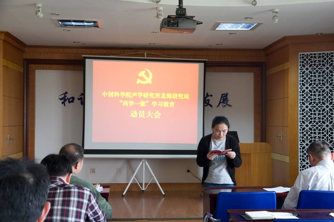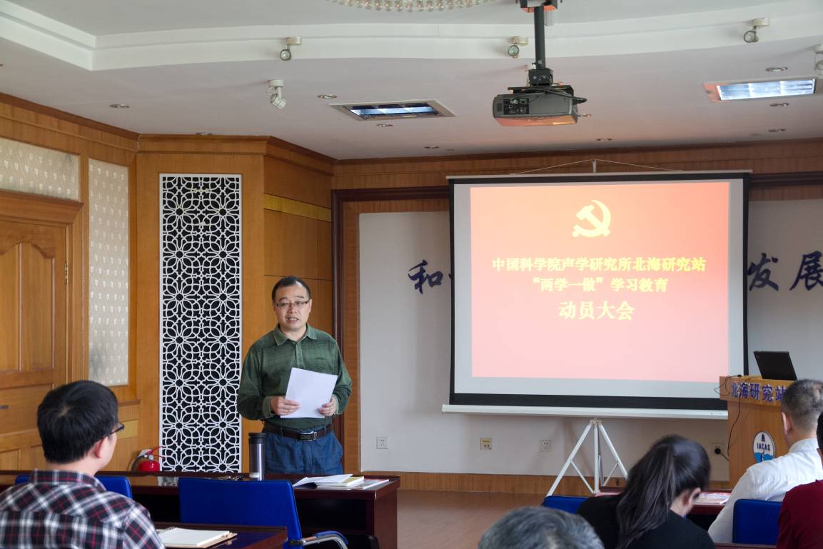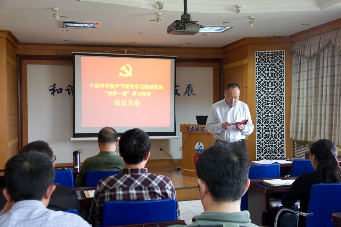 会上,张胜坚书记宣读了《中国科学院声学研究所北海研究站关于在全体党员中开展“两学一做”学习教育方案》。他对北海站开展“两学一做”学习教育活动的总体要求、主要措施及组织领导等进行了部署。指出北海站全体党员干部要按照中央和声学所的部署要求,高度重视,统一思想,各支部要严格按照方案要求做好各阶段的学习。