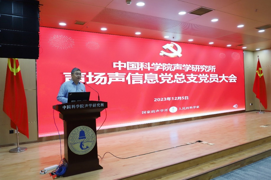 2023年12月5日上午,声场声信息党总支在新科研楼1503会议室组织召开党员大会,会议另设实验1号船、向阳红3号船、法国和澳大利亚四个视频分会场,张仁和院士、实验室主任王海斌等党总支78名党员,党委办公室负责人闫玮丽参加会议,会议由党总支书记彭朝晖主持。