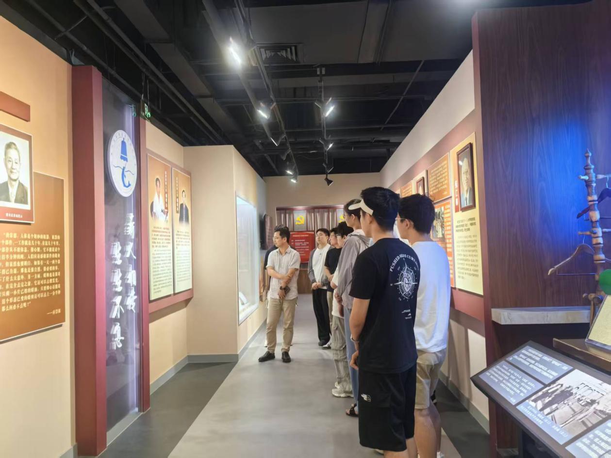 8月7日下午,在组织委员王丽的带领下,同学们参观了声学所所史馆及科学家精神教育基地。志愿者为同学们系统梳理了声学所自建所以来的发展历程与重大科研成果,并学习声学所老一辈科学家胸怀祖国、服务人民的崇高精神,以及勇攀高峰、追求真理的感人事迹。党总支书记张鹏远特别回顾了已故潘老师潜心科研、默默奉献的先进事迹,深情讲述其严谨治学、无私传帮带的动人故事,令在场同学无不动容。