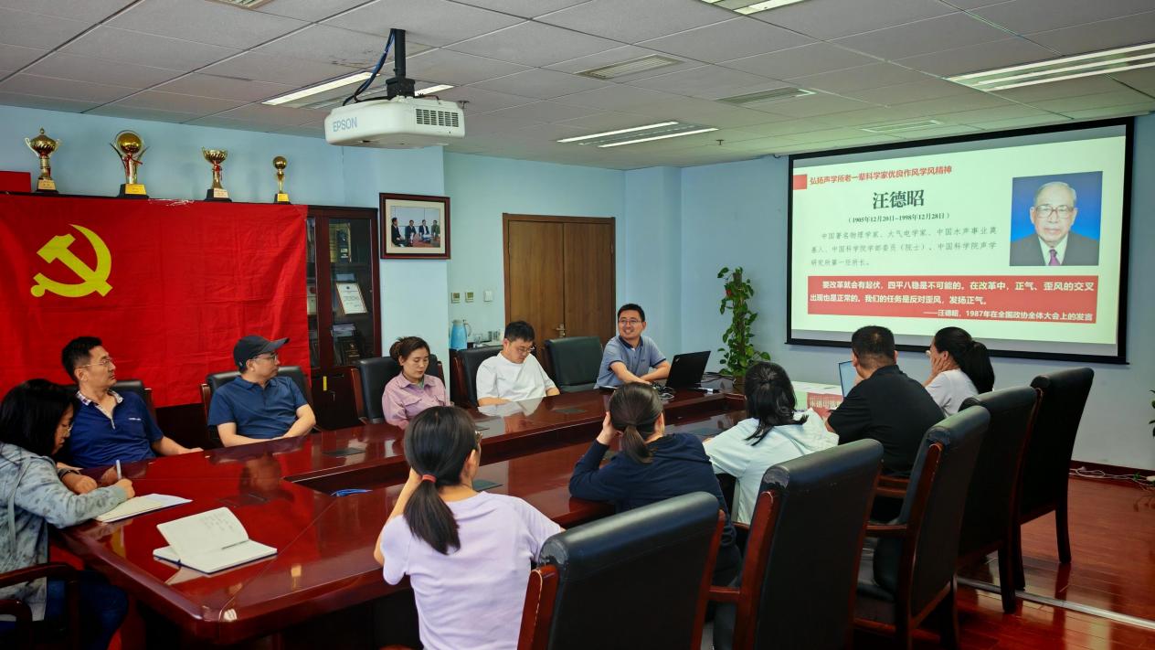 徐及作题为《弘扬声学所老一辈科学家优良作风学风精神持续强化学习教育成效》的党课报告。党课以汪德昭、马大猷、应崇福三位院士的奋斗故事为主线,通过珍贵照片、手稿、视频等方式,生动再现了声学所老一辈科学家“胸怀祖国、敢为人先、严谨治学、甘为人梯”的崇高风范。