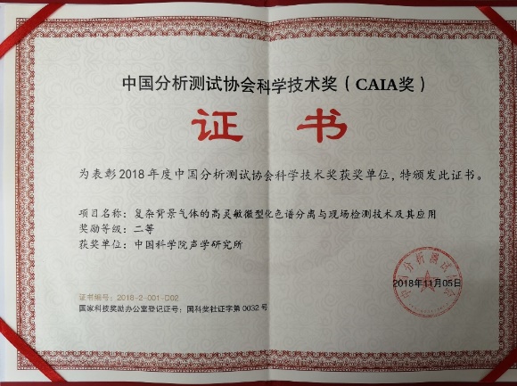 声学所王文等荣获2018年度中国分析测试协会科学技术奖(CAIA奖)二等奖