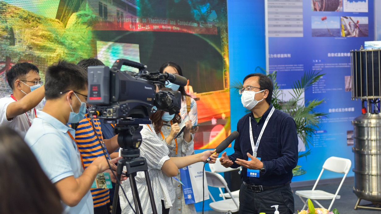 展览会期间,杨军作为特邀嘉宾参加了2020(第四届)海洋移动平台观测与探测技术论坛,向同行嘉宾及参展观众详细介绍了声学所的科技成果。