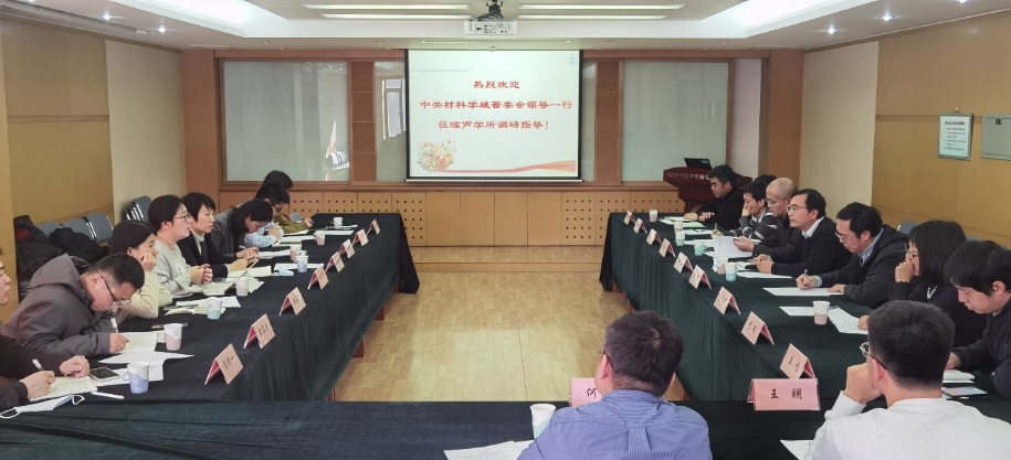2021年12月7日,中关村科学城管委会副主任张健一行9人到声学所调研。声学所副所长杨军、科技发展部主任刘宏伟、各研究单元相关负责同志参加了调研座谈。