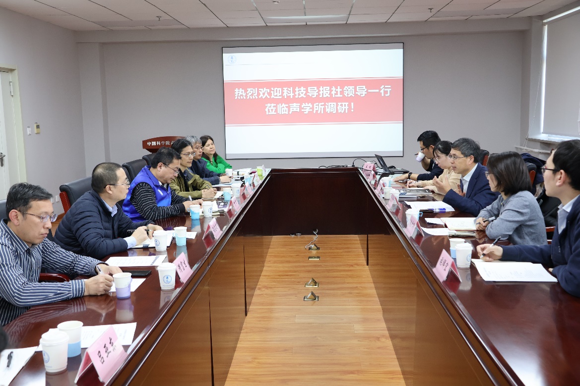 2025年2月26日下午,科技导报社社长林润华一行到声学所调研交流,声学所副所长杨军,科技发展部主任周城光、噪声与音频声学实验室主任程晓斌等相关人员参加了交流研讨。