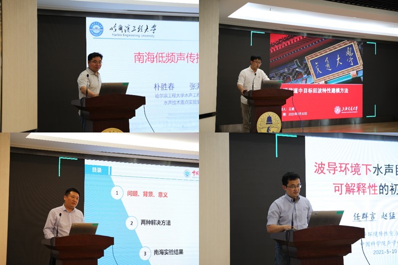 2021年5月11日,中国科学院海洋信息技术创新研究院暨声学研究所2021年第5期学术交流会(总第9期)在北京召开。本次交流会由科技发展部和中科院水声环境特性重点实验室共同举办,邀请哈尔滨工程大学张海刚教授、上海交通大学王斌教授、中国海洋大学高伟教授、中科院声学所任群言研究员作学术报告。中科院水声环境特性重点实验室主任马力研究员、副主任郭圣明研究员、副主任曾娟研究员,超声技术中心副主任陈德华研究员,中科院语言声学与内容理解重点实验副主任李军锋研究员以及广大青年学者近90人参加了会议,科技发展部副主任李剑剑主持会议。