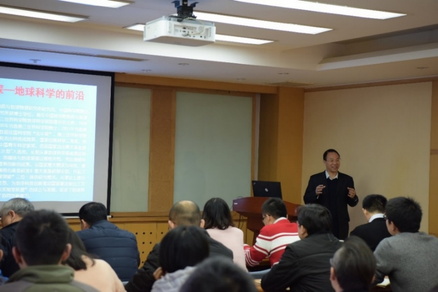 最后,王秀明总结了朱日祥院士的报告内容,认为朱院士提出的地球科学的四大科学前沿问题,为我们的工作指明了方向。他还回顾了参与朱院士主持承担的“深部资源探测核心装备研发”这一国家重大科研装备研制项目5年来的工作情况,非常感谢朱院士对我们的子项目的关心、支持和帮助。