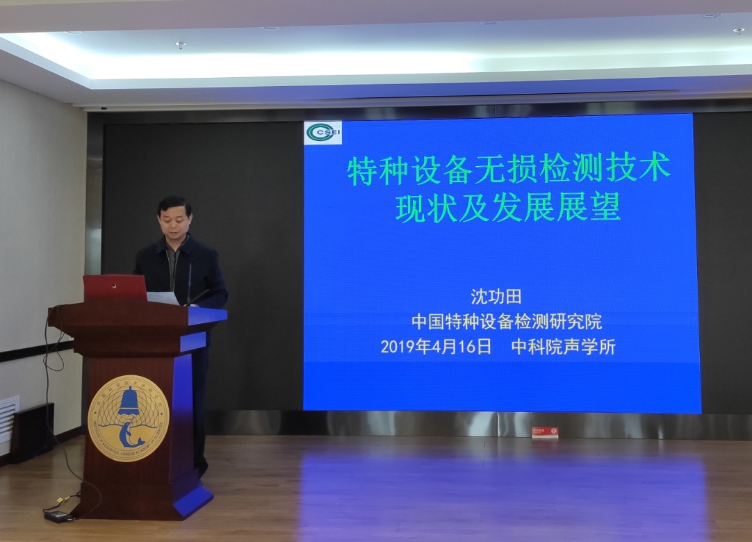 2019年4月16日,应超声技术中心副主任张碧星的邀请,中国特种设备检测研究院副院长沈功田研究员来访声学所,并作题目为《特种设备无损检测技术现状及发展展望》的报告。报告会由马晓川副所长主持,相关科研人员和研究生参加了报告会。