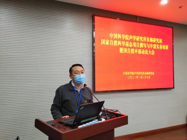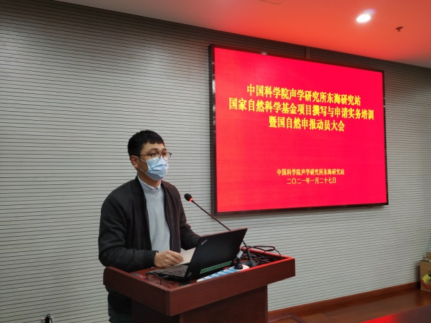 2021年1月27日,中国科学院声学研究所东海研究站组织召开国家自然科学基金项目申请实务培训暨申报动员会,站党委书记、副站长张伟才出席会议并作项目申报动员。本次会议特邀中国科学院上海硅酸盐研究所杰青刘宣勇研究员为我站科研人员作国自然项目撰写与申请实务培训,全站20余名青年科研人员参加培训。会议由科研科科长诸向阳主持。