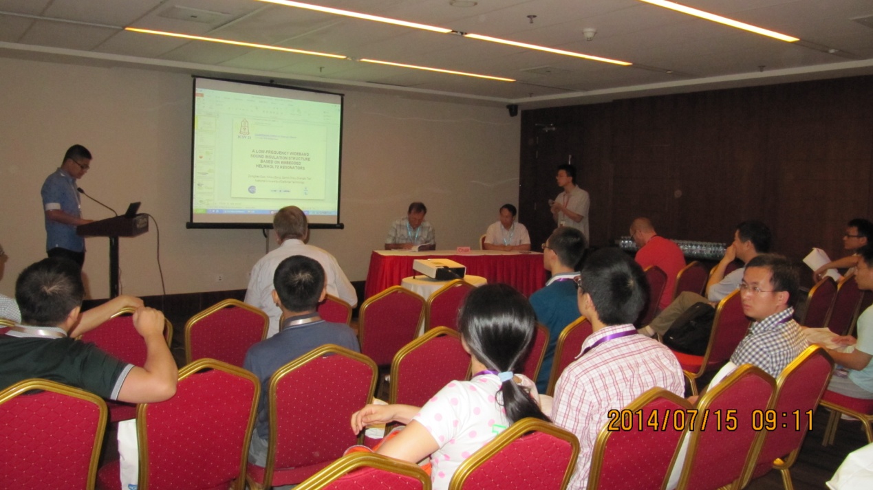 ICSV是由国际声与振动学会IIAV发起组织的声学与振动研究方面的系列国际学术会议,从1994年开始,每年举行一次,迄今已举办了21届,每届会议的参加人数在400~800人之间。其中的“复杂固体和结构中的声传播及其应用”专题分会已经连续举行了两届。