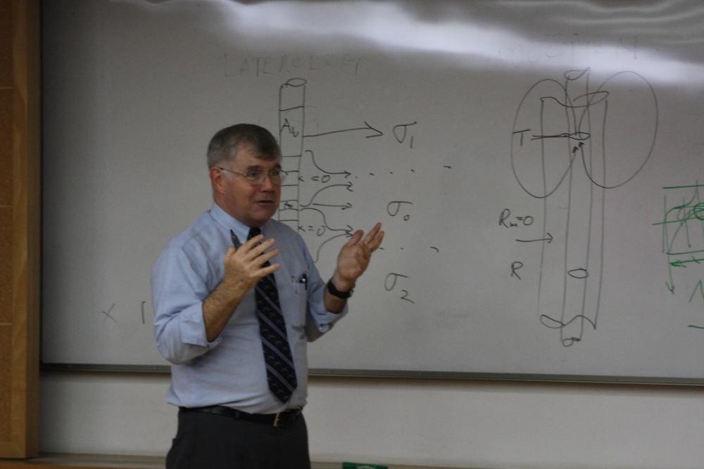 2014年10月20日,应中科院声学所学术委员会主任王秀明研究员的邀请,国际测井分析家学会(SPWLA)主席David Kennedy教授来访声学所,进行学术交流并作了题为“On the future evolution of the LWD versus Wireline markets and tools”的学术报告。报告会在德昭楼218会议室举行,王小民所长出席报告会并致欢迎辞, 王秀明主任主持报告会。声学所张海澜研究员、高永康研究员、林伟军研究员、王东研究员、丛健生研究员等40多位师生参加了本次学术交流活动。