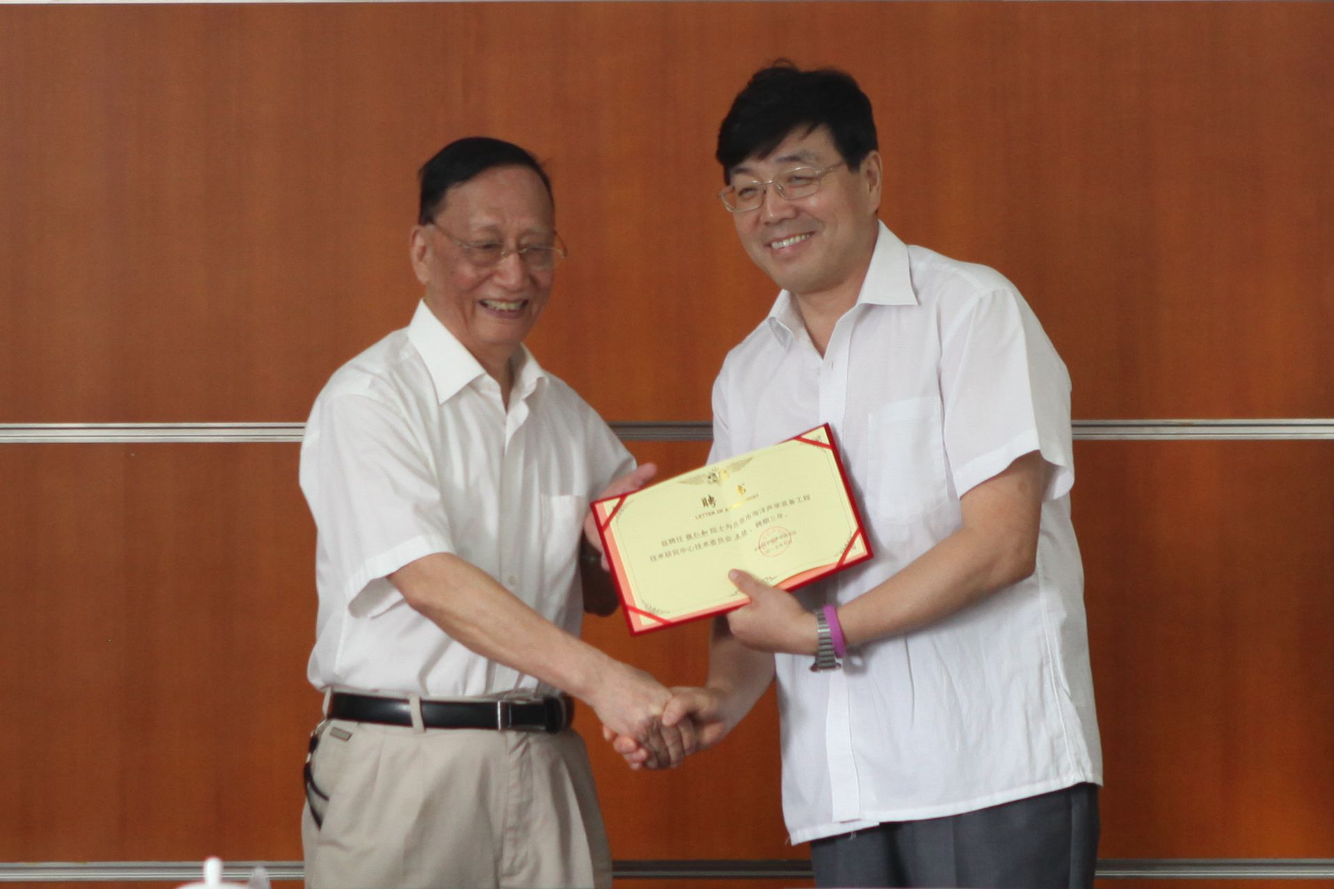 王小民所长为技术委员会主任、副主任颁发聘书,并与杨仁全处长、孙清处长和张仁和院士共同为工程中心揭牌。