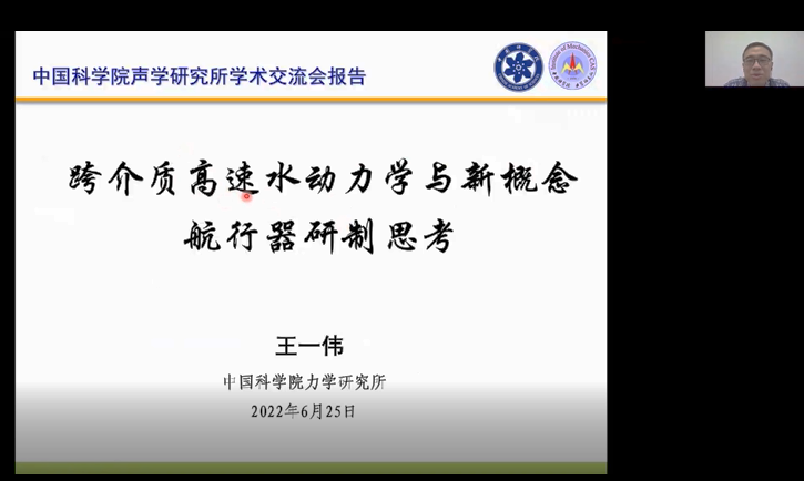 2022年6月25日,中国科学院声学研究所2022年第5期学术交流会在北京召开。本次学术交流会由科技发展部和水下航行器实验室共同组织,邀请哈尔滨工程大学李晔教授、中国科学院力学研究所王一伟研究员、中国海洋大学孙秀军教授作报告。声学所科技发展部主任刘宏伟研究员,水下航行器实验室主任郝程鹏研究员、副主任李璇研究员、蔡昊鹏研究员以及广大青年职工和研究生近百人通过现场和线上方式参加了会议。刘宏伟致开幕词。郝程鹏主持报告及交流研讨。