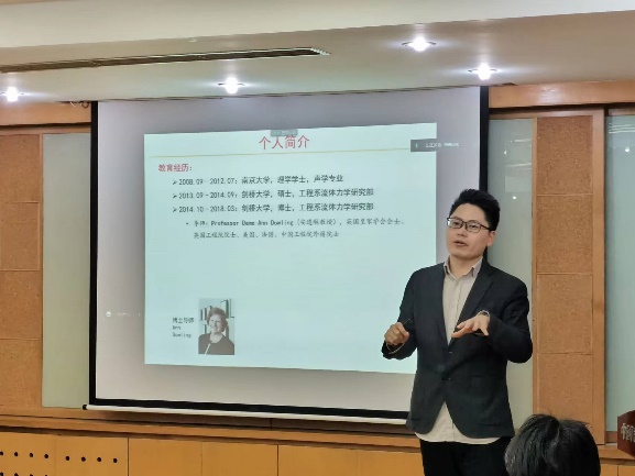 吕本帅作《齿状前尾缘噪声的建模与机理研究》的报告。报告首先介绍了前尾缘噪声、仿生学降噪等方面的国内外研究现状和难点问题,展开介绍了前尾缘噪声的理论建模及相关实验验证、前尾缘锯齿形状的优化设计方法等内容。