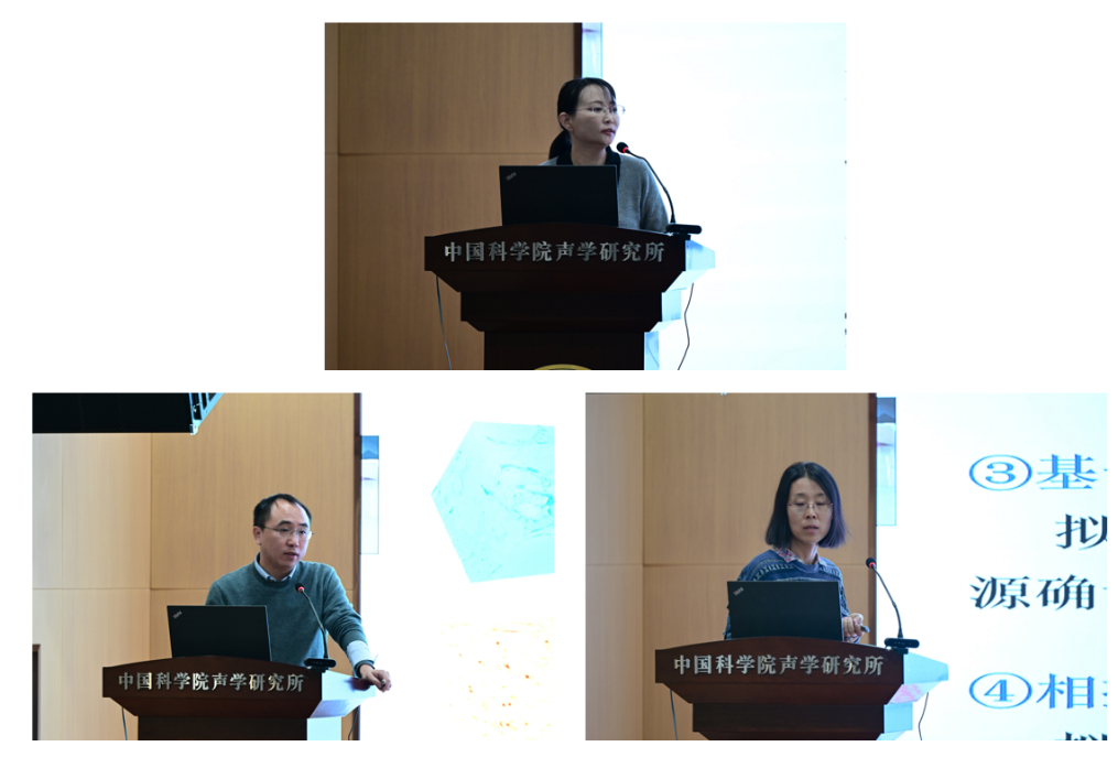 超声学实验室主任陈德华主持项目汇报。项目负责人张秀梅研究员全面介绍了项目的研究背景和意义、内容及方案,并汇报了当前研究进展和下一步工作计划。随后,项目联合单位中国石油大学(北京)的车小花教授和河海大学的张琳副教授分别汇报了各自的研究方案、目标及年度工作进展情况。