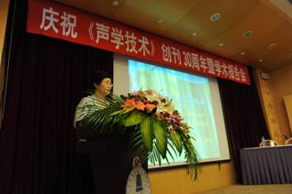 庆祝会上,上海市新闻出版局陈丽副局长作了重要指示,通报了上海报刊工作情况、报刊改革、发展和管理各项工作,对《声学技术》创刊30周年表示祝贺,对《声学技术》的学术水平、编校工作给予肯定和鼓励,并将支持《声学技术》持续发展。胡长青站长代表主办单位领导致辞,欢迎各位领导、嘉宾及代表出席会议。他简要回顾了水声技术的发展及《声学技术》的创刊历史,肯定了30年来《声学技术》所取得的成绩;胡长青站长还宣读了中国科学院声学研究所兄弟期刊《声学学报》、《应用声学》和香港声学学会的贺信。两位老主编、现名誉主编冯绍松研究员、王季卿教授,以激动的心情回忆了当年创刊的艰辛岁月及创刊后经历过的一些沿革和变更。孟昭文理事长在代表上海市声学学会的讲话中说,我们学会自始至终支持期刊的工作,各主办单位给予了人力物力的支持,《声学技术》30年来所取得的成绩,是历届学会领导、各主办单位、历届编委会和编辑部同仁共同努力的结果,学会将会一如既往地支持期刊的工作,希望声学技术“越办越好,名列前茅”,同时也感谢国内外声学界的科技工作者长期以来给予的支持和鼓励!随后,姚蓝主编代表编委会和编辑部,作了题为“回顾过去 为了未来”的报告,汇报了为庆祝这次活动所做的工作,《声学技术》的办刊经历,30年来刊物取得的进步和今后进一步办好刊物的一些设想;姚蓝主编认为,30年来《声学技术》取得了一定的成绩,在声学界赢得了较好的声誉。