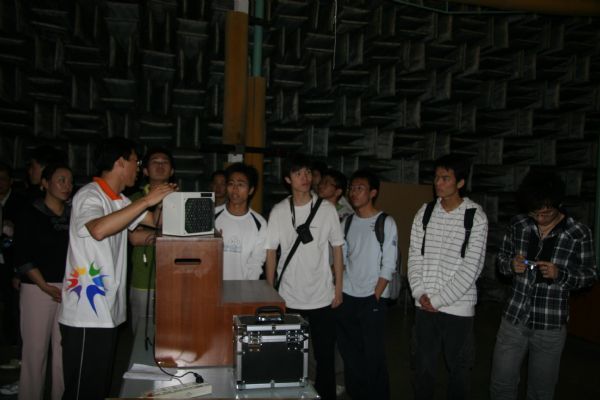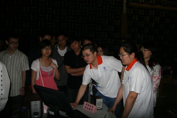 昔日神秘、高深莫测的科研活动和科研设施,完全展示在人们的面前,任由人们近距离观察、触摸、感受。在音频声学实验室,参观者们还亲身体验了全消声室、半消声室、混响室带给人的神奇的感受。“屏住呼吸,静下心,闭上眼睛,你就会发现一种类似耳鸣的感觉始终缠绕在你周围,那就是你血液流动的声音。”这就是全消声实验室带给你的感受。整个实验室从四周围墙到天花板和地面全被一米多厚的吸音材料包围,试验人员则是凭借交错的钢丝绳吊在半空。在这个实验室里,所有发出的响动都十分短促而有力,没有一丝杂音和余音,就连喊声都变得十分干脆了。水声测试水池所提供的水下声场环境,不仅展示了科研实验的过程,还让观众感受到了水韵音箱在水中播放音乐时所产生的立体声效果。