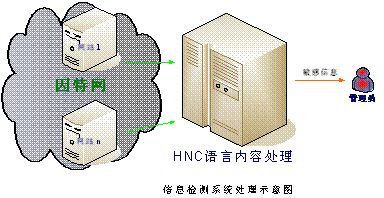 概念层次网络(Hierarchical Network of Concepts,简称HNC)理论,并发展形成了HNC自然语言理解处理技术,它的最大特点是能够进入语义深层处理自然语言语言的内容。HNC已经形成了面向语句的句类分析技术,达到国际领先水平。智能网络文本信息检测系统,能模拟人浏览网页的方式对互联网的内容进行审查清理,对于不能做出判断的内容,系统还能提出警告,供人工判别。