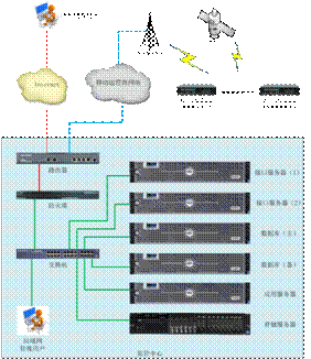 监管中心主要由服务器、工作站、系统软件(数据处理软件、Web查询软件系统、GIS、地图、数据库软件等)、控制管理软件组成,还包括存储、交换机、防火墙、路由器等硬件设备。平台详细网络拓扑图如图2所示。