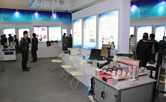 在开幕式上,省委领导李强、毛光烈一行视察了中科院声学所东海站技术成果展示区。在我站“全自动喷丝板镜检仪”样机前,李强省长听取了我站项目主管的汇报,对我站的多项创新技术给予高度评价,并表示浙江杭州是有名的中国纺织之城,希望东海站可以积极与省内各大企业开展产学研合作,实现高新技术产业化。