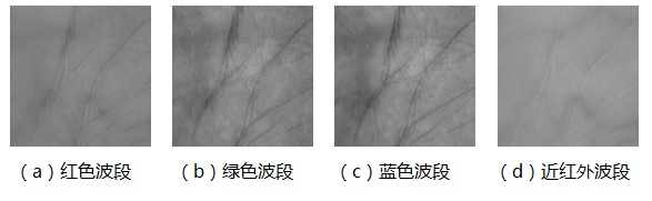 根据香港理工大学David ZHANG教授此前的研究,由于皮肤组织对于不同波长的光的传播能力不同,将多光谱成像技术应用于掌纹信息采集,可以得到不同皮层下的更细致的特征信息,有效提升目标特征的可辨识度,得到理想的可识别生物特征(图1)。