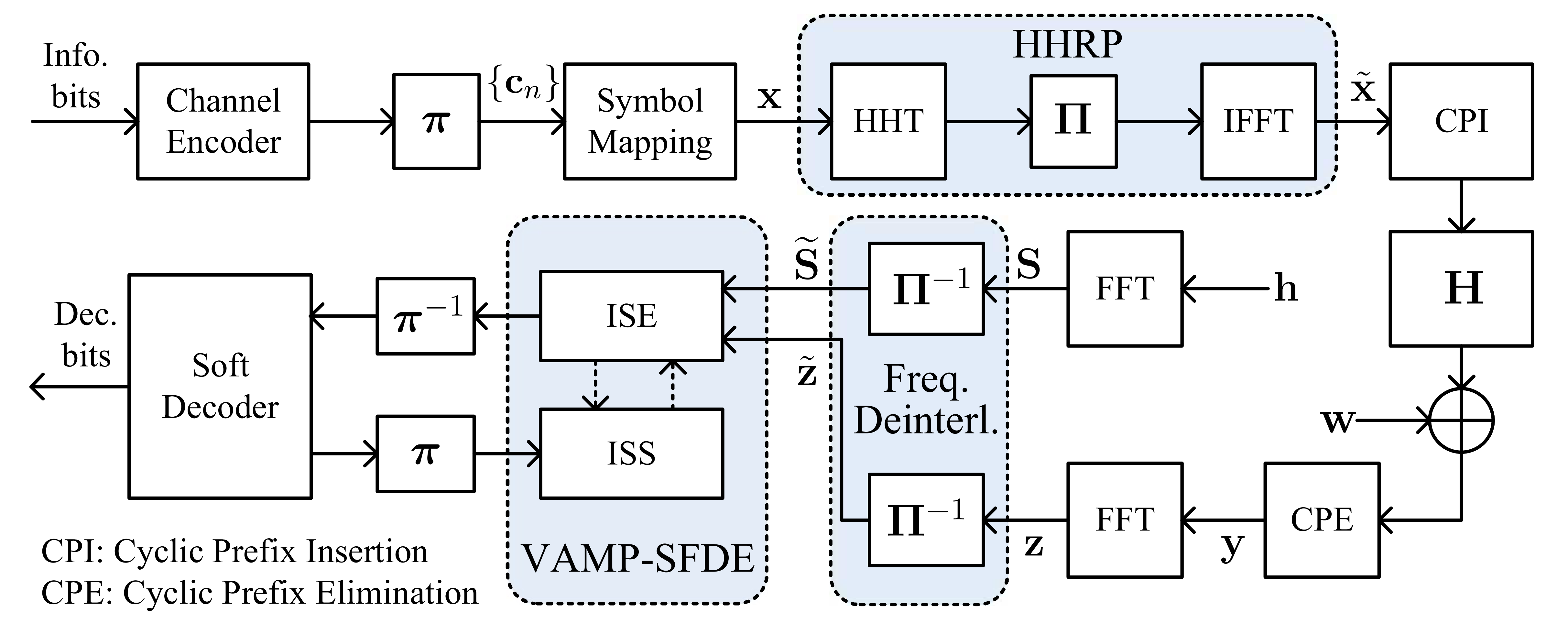 为了实现低复杂度下的最优均衡,中科院声学所海洋声学技术中心博士生李栋与其导师朱敏研究员、武岩波研究员,联合东南大学陶俊教授共同提出了一种Hadamard-Haar随机预编码(Hadamard-Haar Random Precoding,HHRP)方案,并在接收端通过向量近似消息传递(vector approximate message passing, VAMP)算法使均衡性能接近理论最优值。