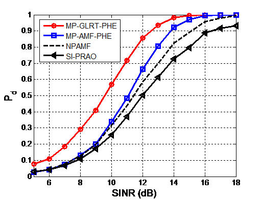 为解决上述问题,中科院水下航行器信息技术重点实验室郝程鹏团队与意大利同行开展合作研究,提出了三种适用于部分各向同性环境条件的参数化泄露空时自适应检测方法,分别是改进的参数化广义似然比检测 (the modified parametric generalized likelihood ratio test for PHE, MP-GLRT-PHE)、改进的参数化自适应匹配滤波器 (the modified parametric adaptive matched filter for PHE, MP-AMF-PHE)和改进的Wald 检测(the modified parametric Wald for PHE, MP-Wald-PHE),可实现对背景干扰结构化信息和目标能量泄漏信息的综合利用,在有效减小计算量及泄露损失的同时,还能准确估计目标距离参数,将STAD技术的实用性向前推进了一大步。
