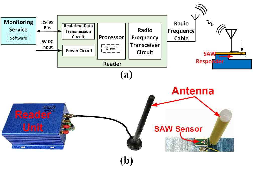 图2. 无线无源传感原理图(a)及系统实物图(b) (图/中科院声学所)