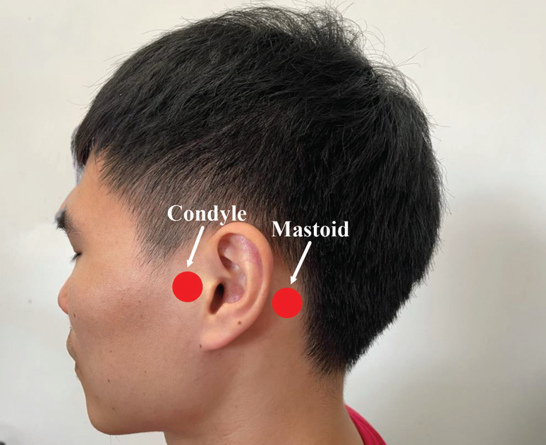 图1 乳突(Mastoid)和髁突(Condyle)的位置示意图。(图/中科院声学所)