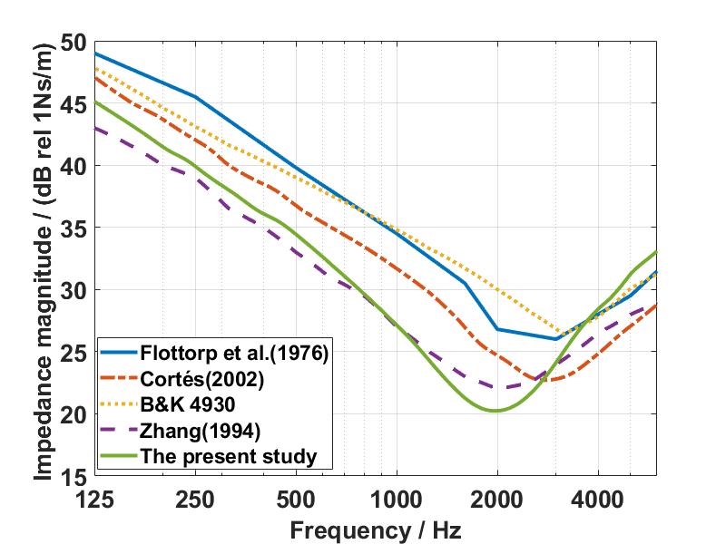 对此,中科院噪声与振动重点实验室博士研究生聂亚飞与其导师李晓东研究员、桑晋秋副研究员等人测试了100位中国人的乳突和髁突机械阻抗(图1),分析了不同生理因素与颅骨力阻抗的关系,其次搭建电力类比模型预测了力阻抗的差异对骨传导器件输出力的影响,并且与西方人群的颅骨力阻抗进行了对比。