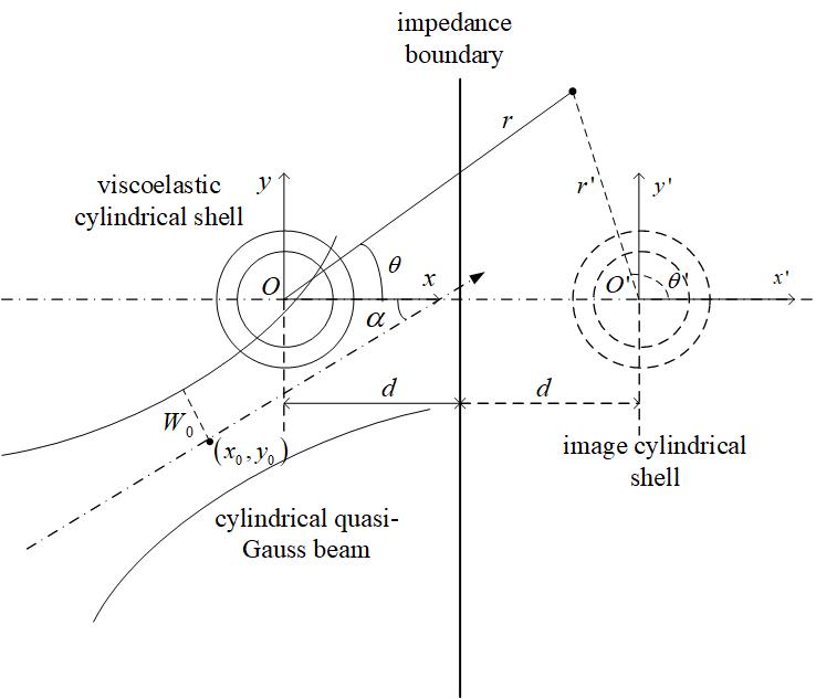图1 高斯声束入射到水中阻抗边界附近粘弹柱壳的示意图(图/中科院声学所)