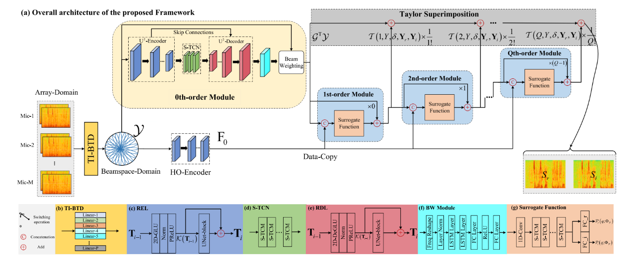 对此,中国科学院声学研究所噪声与音频声学实验室郑成诗研究员和李晓东研究员研究团队提出了基于泰勒级数展开形式的单通道与多通道语音增强算法,将单通道场景中的幅度-相位解耦与多通道场景中的空间-谱域解耦重新建模并通过泰勒级数展开进行分解,使得网络结构具有类似泰勒展开的数学形式。相关研究成果在线发表于学术期刊IEEE/ACM Transactions on Audio, Speech, and Language Processing(中国科学院期刊分区声学一区,IF:5.4)和Information Fusion(中国科学院期刊分区计算机一区top,IF:18.6)。两篇论文的通信作者均为中国科学院声学研究所郑成诗研究员,第一作者均为其指导的博士研究生李安冬,主要作者还包括李晓东研究员、余果宸、刘文哲、范存航副教授等。