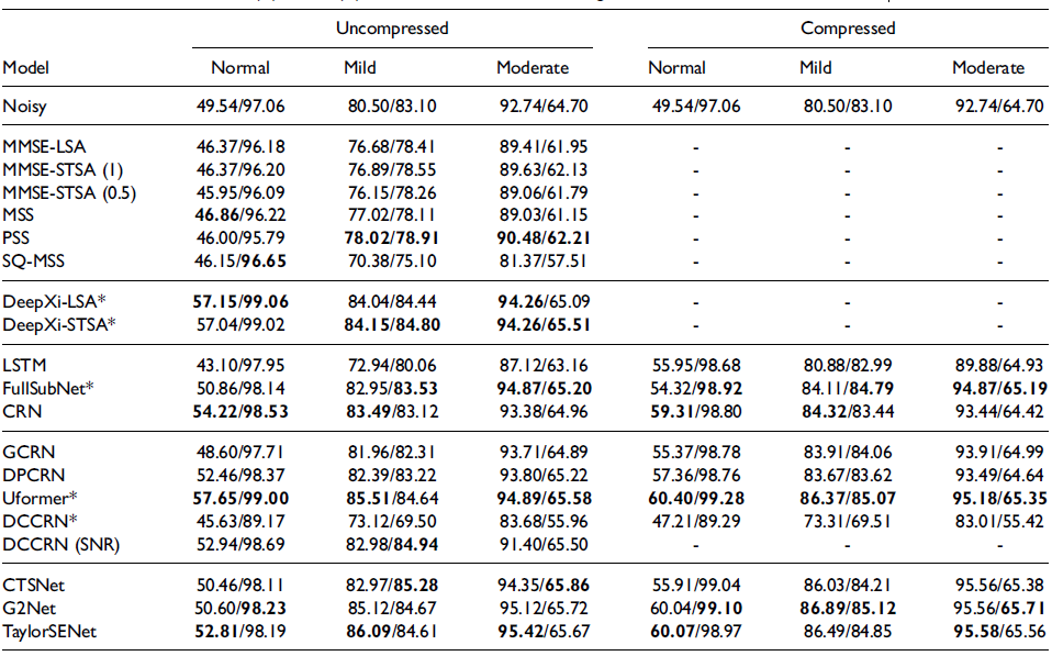 对于模拟正常听力/听力受损人群,基于深度学习的方法处理结果都相较传统算法有更好的性能体现。