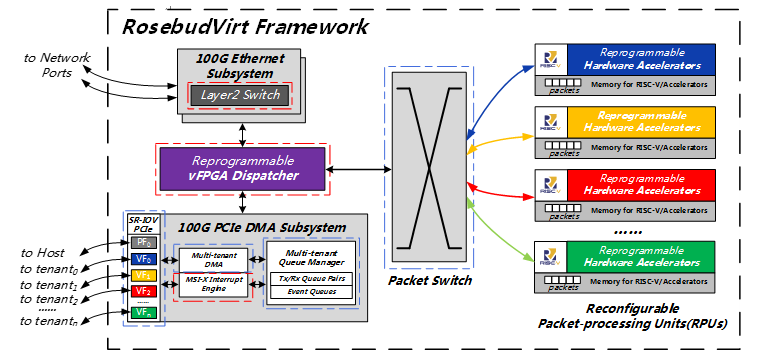 参考文献:Yiwei Chang and Zhichuan Guo. RosebudVirt: A High-Performance and Partially Reconfigurable FPGA Virtualization Framework for Multitenant Networks. IEEE Transactions on Very Large Scale Integration (VLSI) Systems, 2024. DOI: 10.1109/TVLSI.2024.3436017