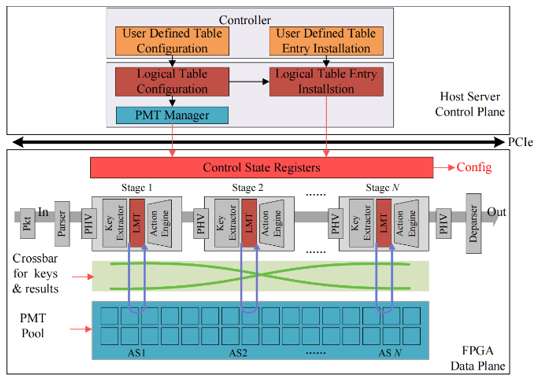 关键词:FPGA虚拟化;多租户;部分可重构;容器;可重构匹配表;掩码匹配表;精确匹配表