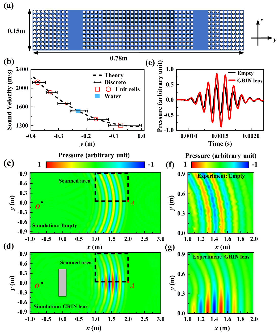 图2 阻抗匹配型梯度透镜的仿真和实验验证(图/中国科学院声学研究所)