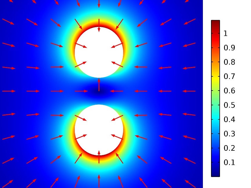 图1 两个气泡在声波激励下的速度场(图/中国科学院声学研究所)