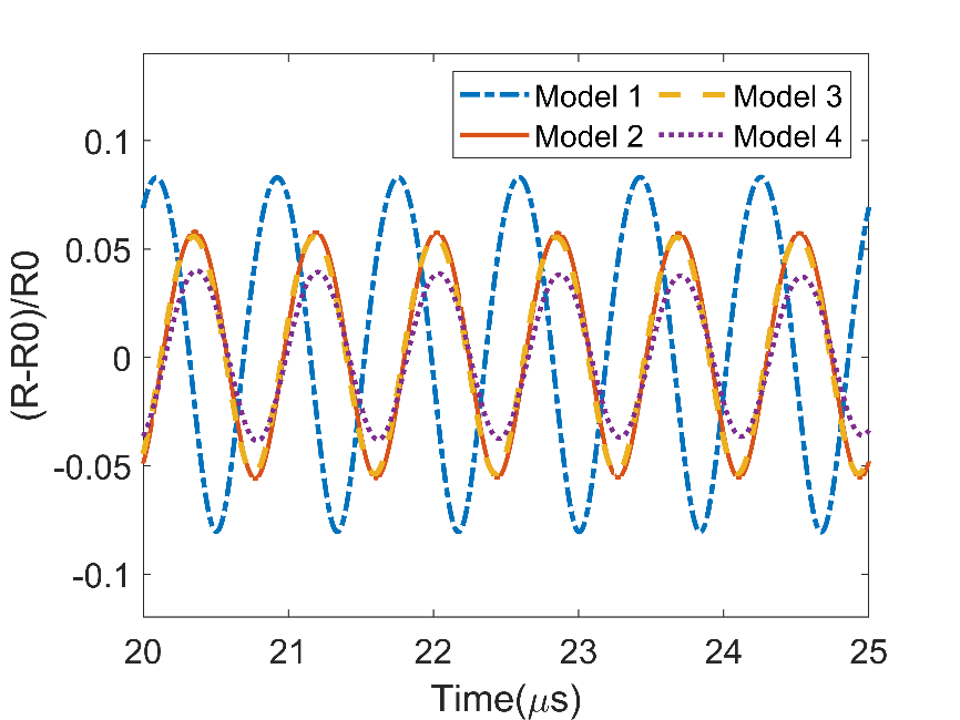 图2 基于不同模型的气泡瞬时半径(图/中国科学院声学研究所)
