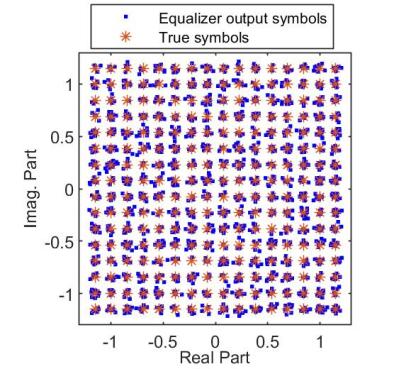 在以往的研究中,针对高阶调制信号多采用嵌入锁相环(Phase-Locked Loop,PLL)的判决反馈均衡器(Decision Feedback Equalizer, DFE)作为接收方案,但是PLL存在相位偏移估计性能随信号星座图案增大而降低的问题,在快速移动下仅利用PLL无法补偿严重的定时偏差,并且随着调制阶数的增加,DFE判决导引可靠性将降低。