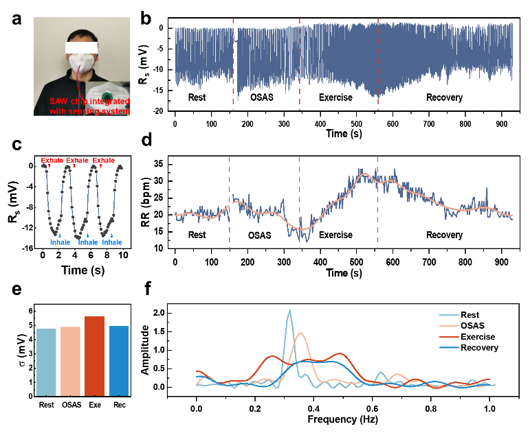 图3 基于声阻抗效应的声表面波实时呼吸监测(图/中国科学院声学研究所)