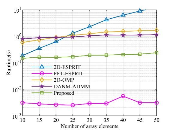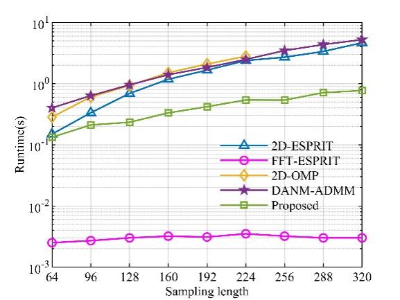 郝程鹏研究团队将水下目标探测中的距离-角度估计问题建模为一个二维无网格稀疏恢复问题,进一步将其表征为一个解耦原子范数最小化问题,突破了传统稀疏恢复方法依赖于网格字典的瓶颈。针对该优化问题,团队还提出了二维快速内点法,用于高效且精确地求解参数估计问题。在处理一个具有M×N维(其中N是时域采样点个数,M是阵元数)的数据时二维快速内点法每次迭代的计算复杂度仅为O(N2),且最大迭代次数不超过50次。研究结果显示,该方法在计算效率、分辨率以及参数估计精度方面具有优势。