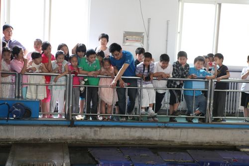曾经服务执行“蛟龙”号载人潜水器5188米海试任务的试航员杨波亲临现场与观众互动交流,播放“蛟龙号”载人潜水器海试录像片。“蛟龙”号载人潜水器于去年7月下潜至5188米,标志我国具备了载人到达全球70%以上海洋深处进行作业的能力。