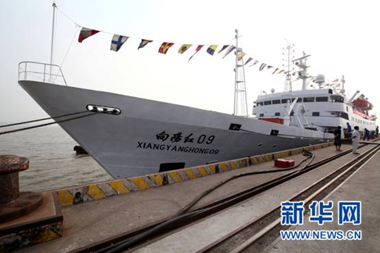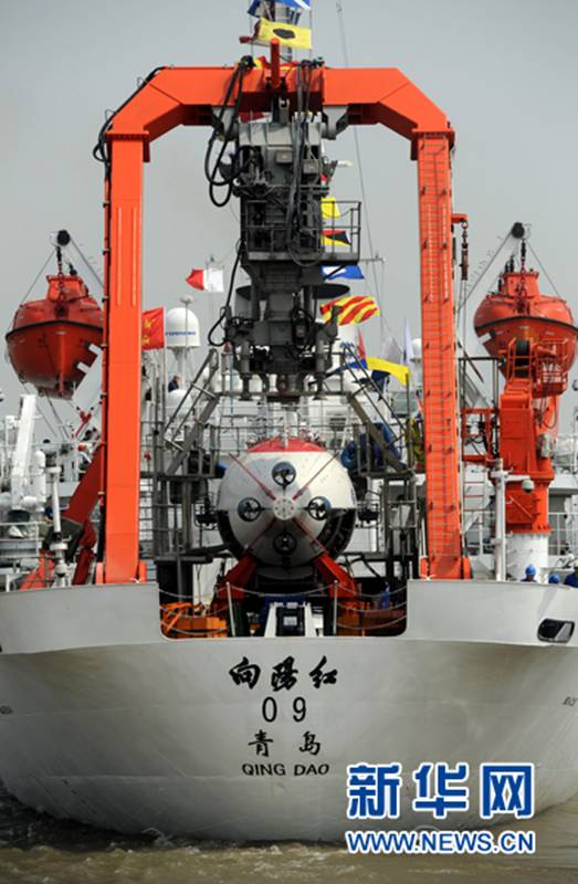 6月3日,“向阳红09”试验母船从江苏江阴苏南码头起航。当日上午,搭载着我国“蛟龙”号载人潜水器的“向阳红09”试验母船从江苏江阴苏南码头启航,奔赴马里亚纳海沟区域执行“蛟龙”号7000米级海试任务。