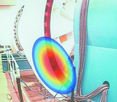 通过声学照相机发现,噪声的来源在机器的底部。 (图片由中科院声学所提供)