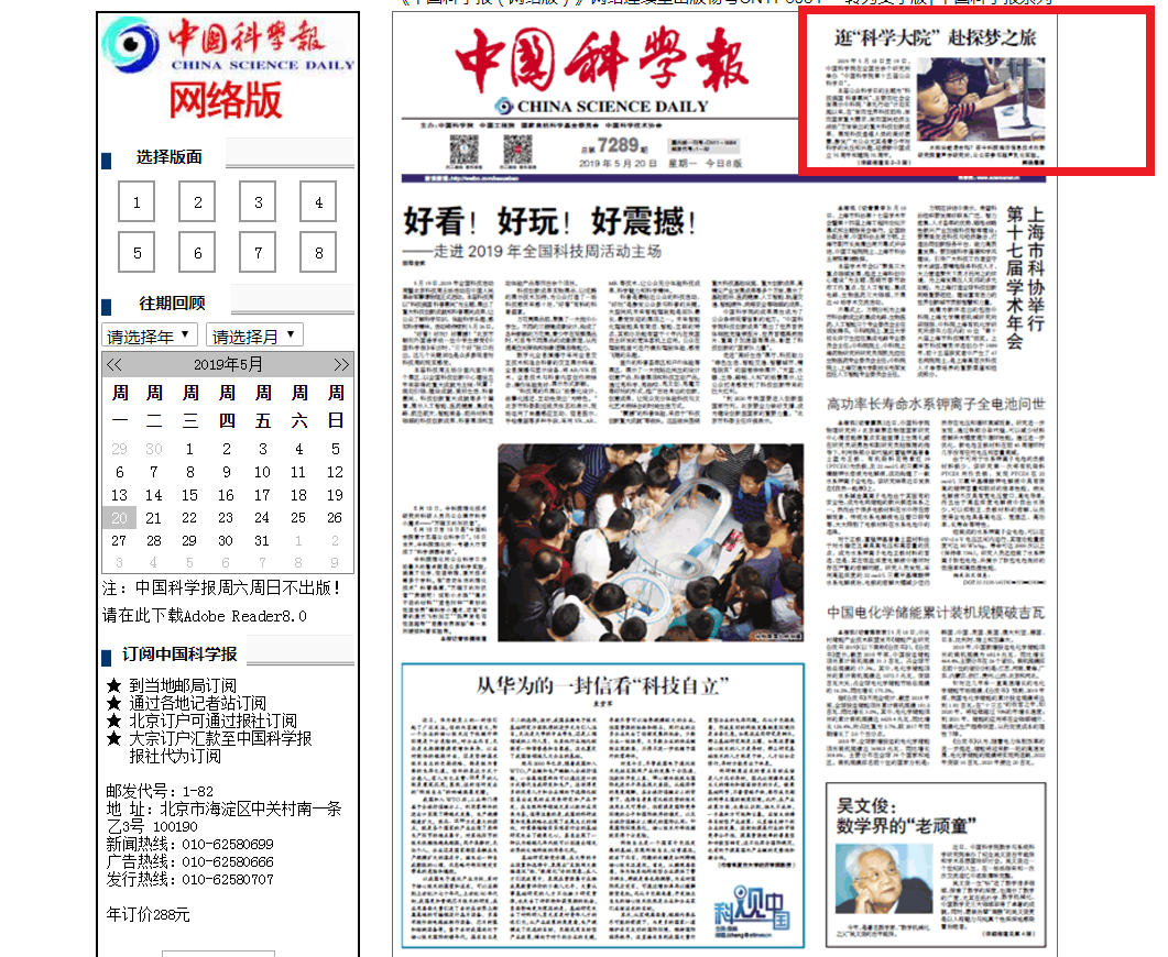 2019年5月18日至19日,中国科学院在全国百余个研究所举办“中国科学院第十五届公众科学日”。