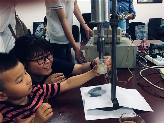 水和油能混合吗?在中科院海洋信息技术创新研究院暨声学研究所,公众在参与超声乳化实验。韩扬眉摄
