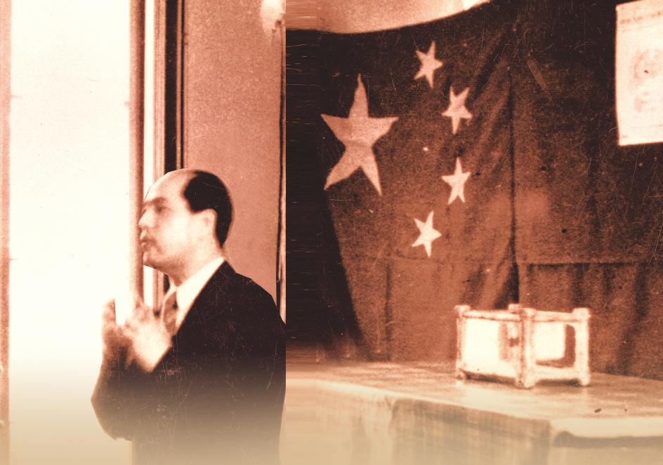 汪德昭保存着一张珍贵的照片,照片中的汪德昭身穿黑色西装庄重地站在国旗前号召大家支援中国人民志愿军,他的双手贴在胸口,慷慨激昂地盈泪演讲。