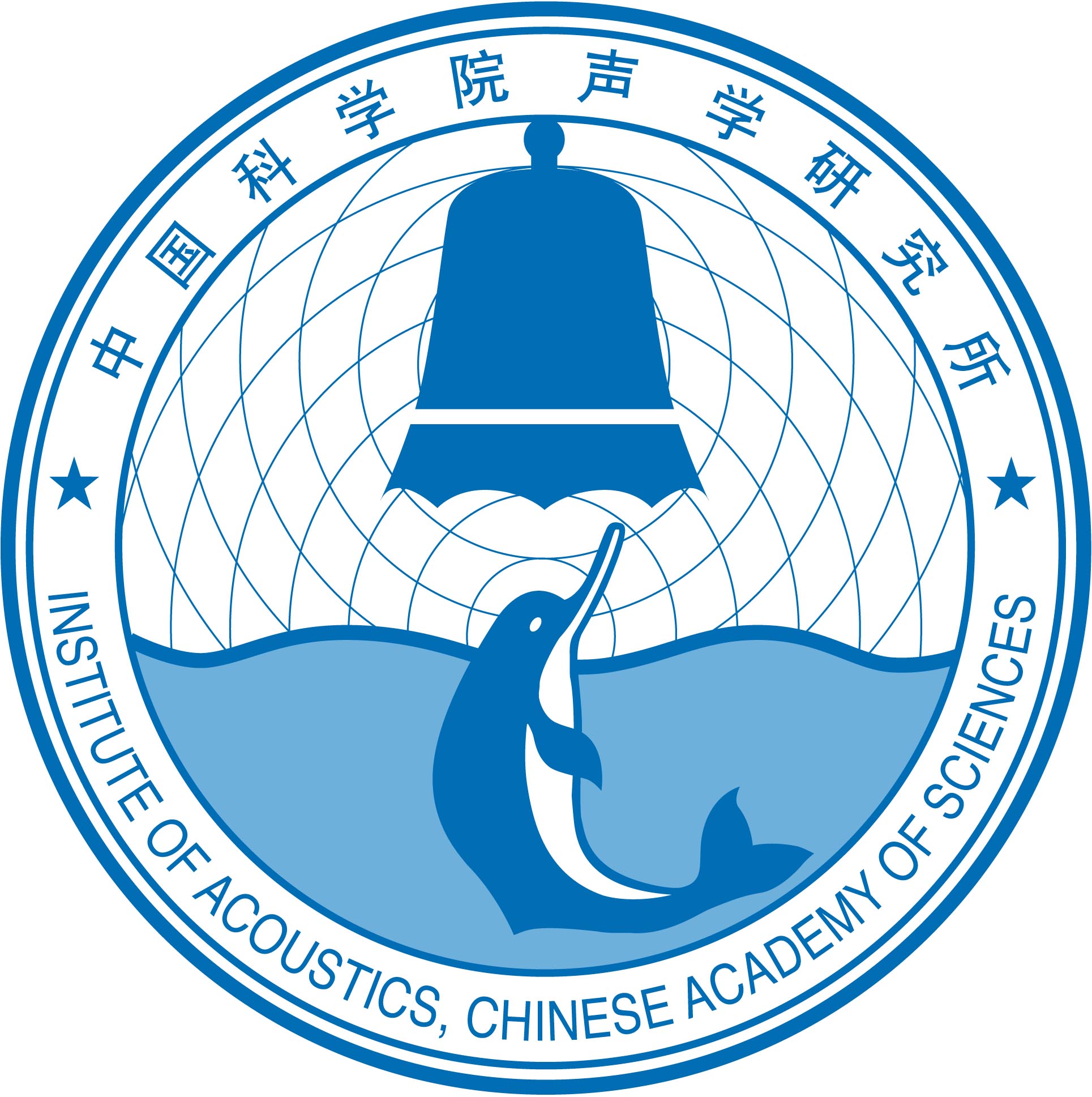 中国科学院声学研究所的所徽以具有中国声学研究特色的永乐大钟和白鱀豚为主要要素,配以相互交融的水面与空气中的声波波纹背景,既体现了我国声学学科发展的悠久历史和现代成就,也标志着声学所肩负的发展中国声学事业,并代表国家参与国际声学研究竞争的历史使命。