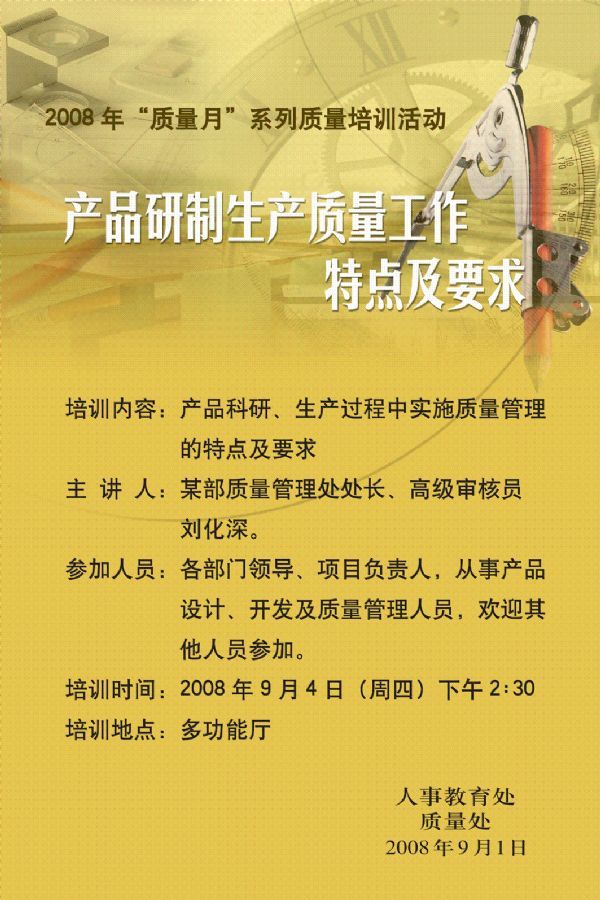 产品研制生产质量工作特点及要求培训